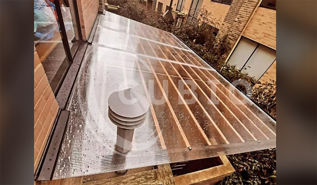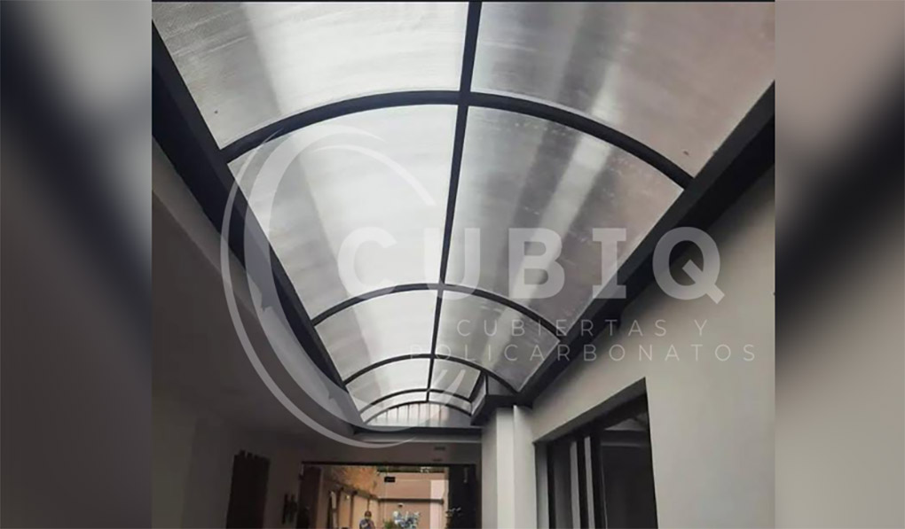 Gracias a su transparencia y durabilidad, es la elección perfecta para cubiertas, domos, pérgolas, terrazas, entradas o patios donde se busca iluminación natural con protección UV.